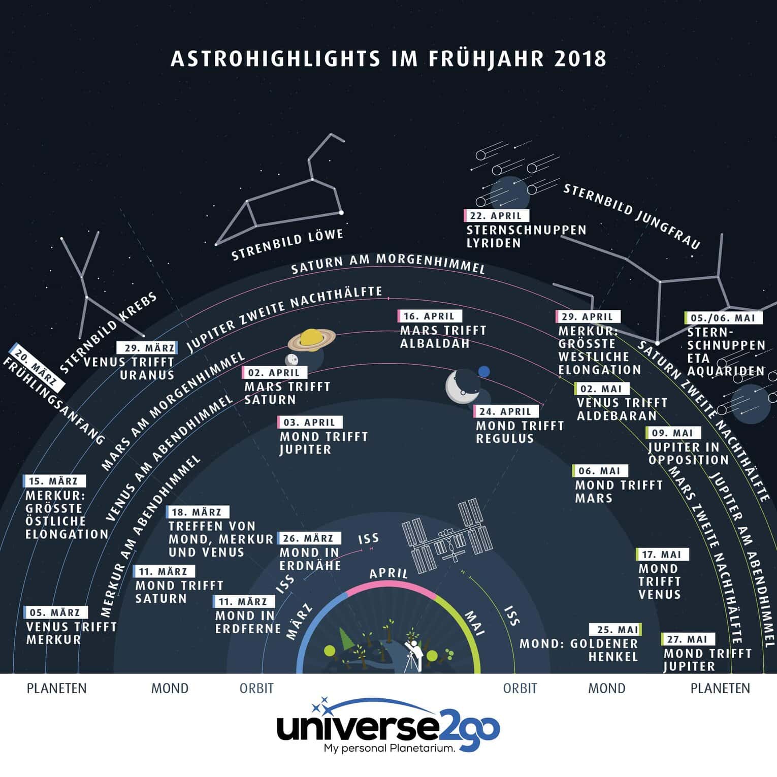 Unser neuer Partner Astroshop hat uns eine übersichtliche Infografik der Astrohighlight im Frühjahr 2018 bereitgestellt, welche wir Euch nicht vorenthalten möchten.